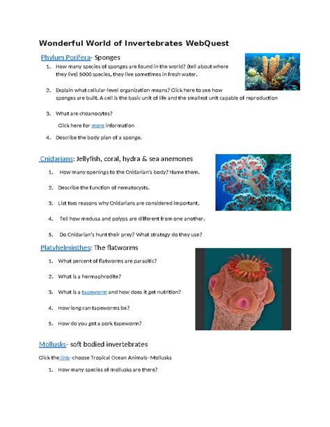 Download Wonderful World Of Invertebrates Webquest Answer Doc